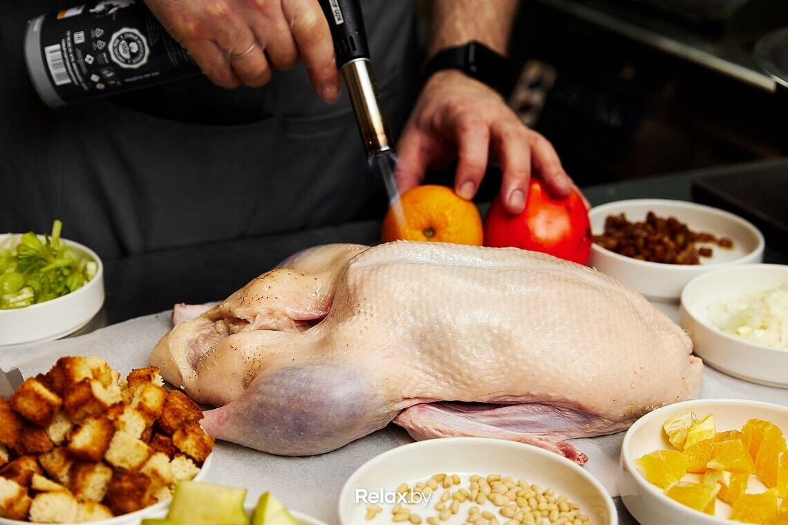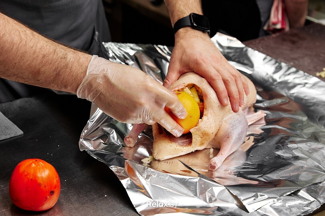 В Беларуси в силу разных причин главное место на праздничном столе чаще всего занимает курица. Но шеф-повар ресторана Le gosse Антон Немирович предложил новый рецепт для вашей семейной книги: утка, фаршированная цитрусами. И если вам вдруг показалось, что звучит слишком сложно, расслабьтесь: всего 20-30 минут подготовки, и дальше духовка сделает свое дело. Поехали!