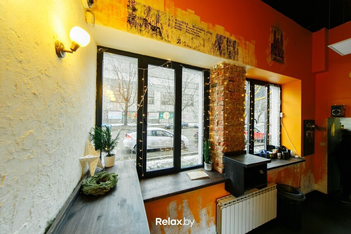 Невозможно представить ночной гастрономический Минск без этого мини-кафе на Октябрьской! Здесь предлагают внушительный ассортимент авторских сэндвичей — порядка 25 позиций. Интерьер выполнен в теплых тонах с элементами, стилизованными под старину. Акцент на ручной росписи с городскими мотивами Минска 1885-х г.