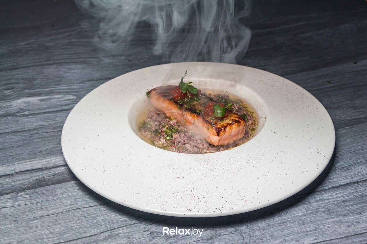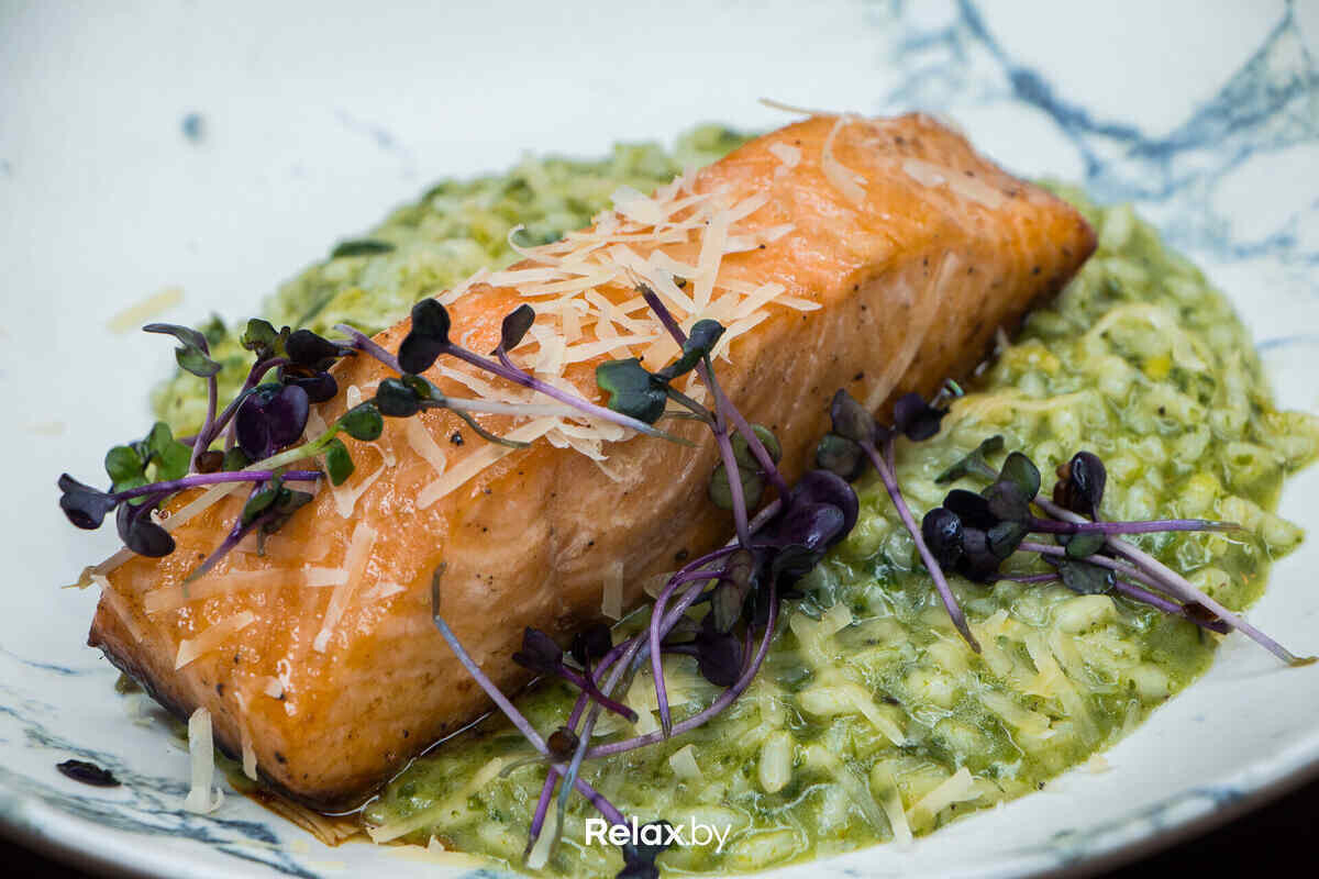 Пряный лосось со сливочно-шпинатным ризотто 35 руб.