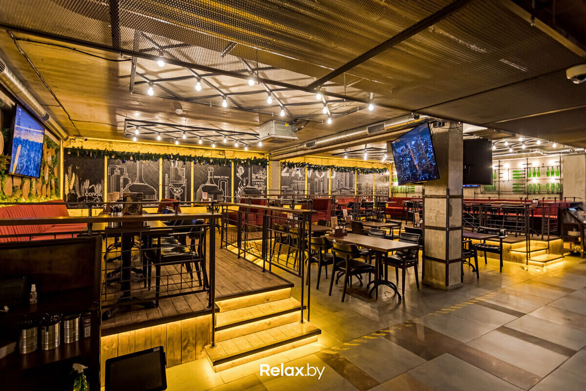Локацию на Машерова, 19 вы наверняка помните: там работал некогда популярный ресторан «7 комнат». От его былой славы достаточно пафосного места с определенной публикой не осталось ничего: пару недель назад здесь открылся ZAVOD (Завод) — демократичный гастропаб с караоке, который готов кормить вас до 6 утра с воскресенья по четверг, и до 8 — в пятницу и субботу.