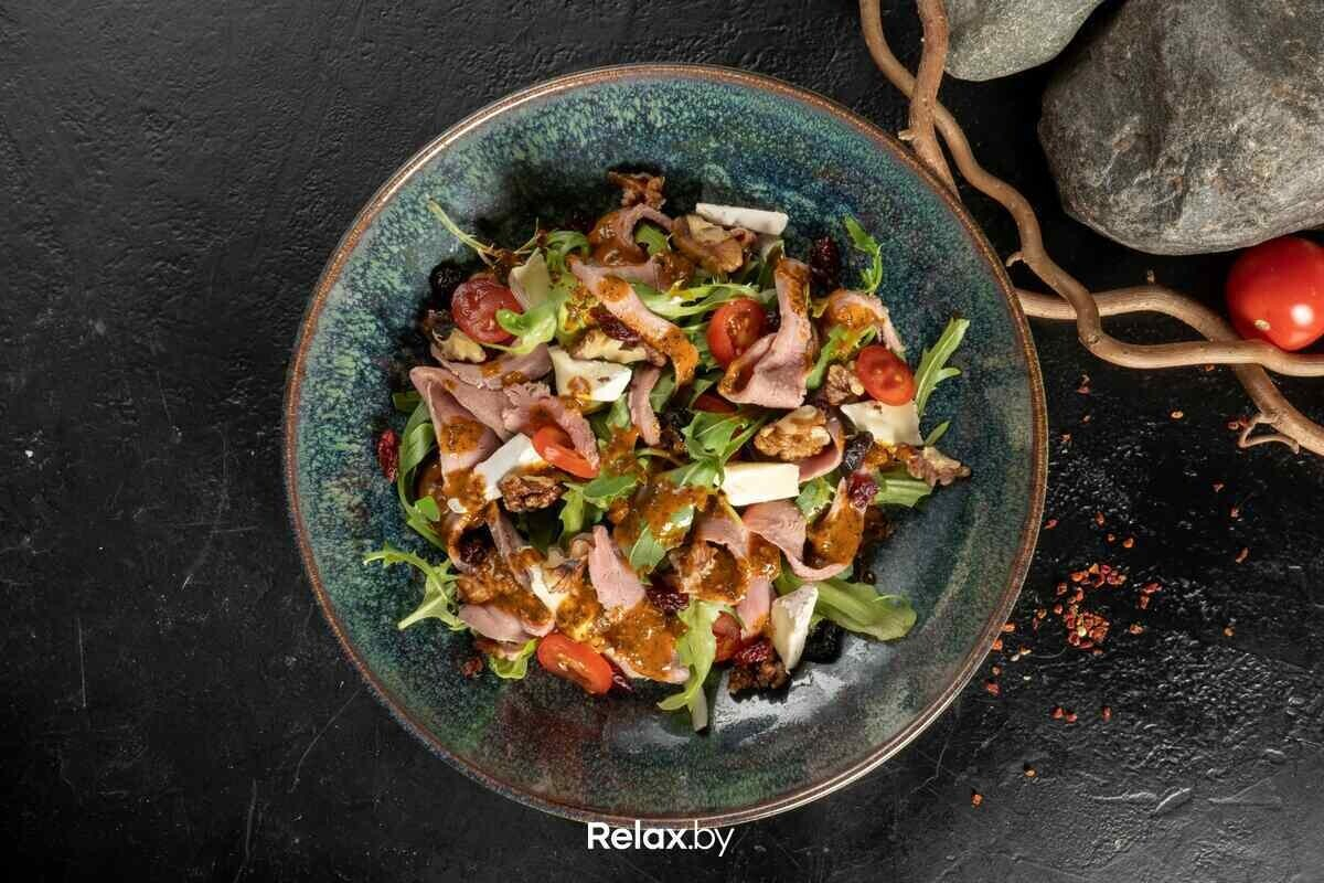 Салат с говядиной, вялеными томатами и жареным сыром халуми 19 руб.;