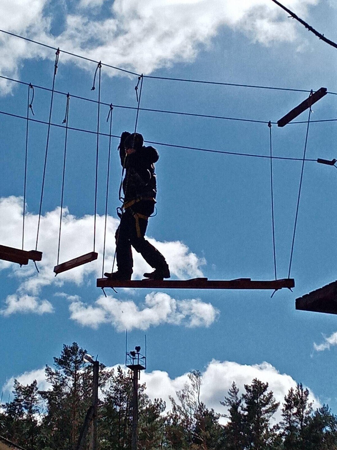 - веревочный парк в лесу (2 трассы для детей и взрослых), скалодром, лазертаг и стрельба из лука;