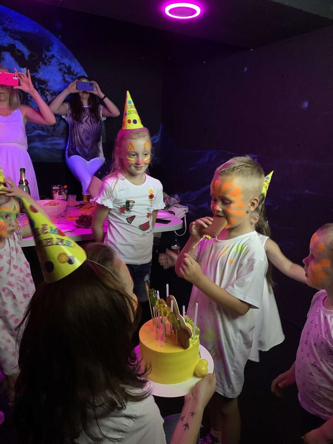 - майка именинника, которую все гости разрисовывают неоновыми маркерами;