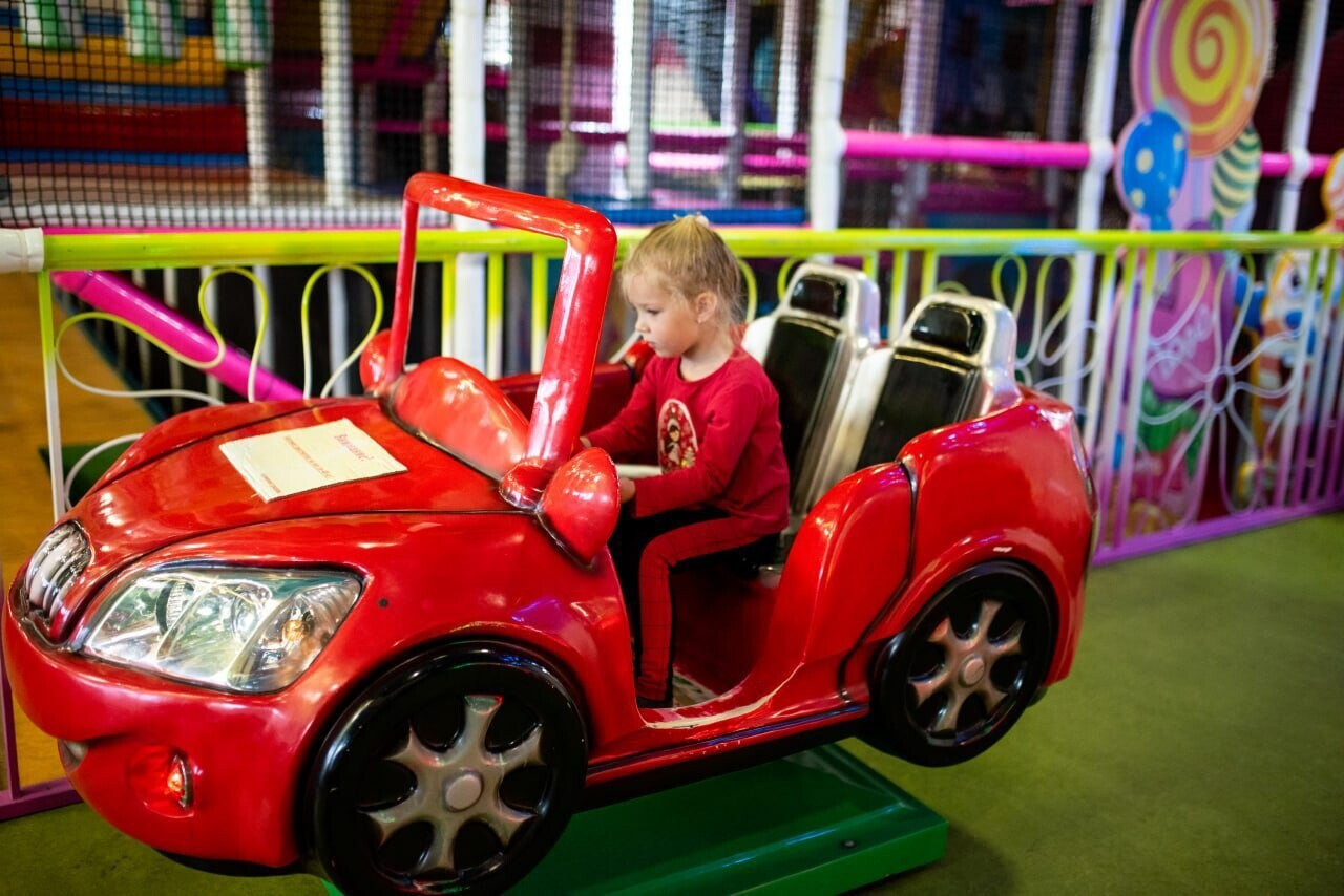 - огромная игровая площадка с горками, батутами, шариковым бассейном, пушкой и каруселями;