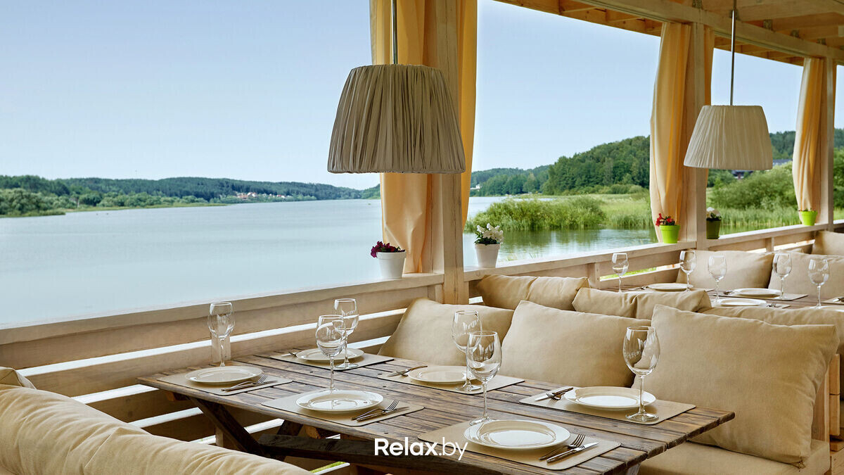 С крытой террасы, расположенной в живописном саду, открывается прекрасный вид на озеро. Удобные подушки и пледы позволят насладиться изысканными блюдами в атмосфере тепла и уюта. Отметим, что здесь действует сезонное летнее меню блюд и напитков, а каждые выходные играют DJ-сеты, в субботу — живая музыка.