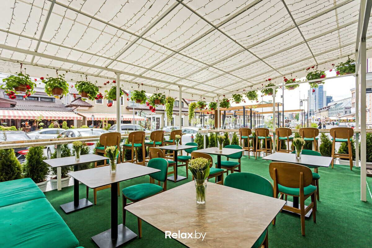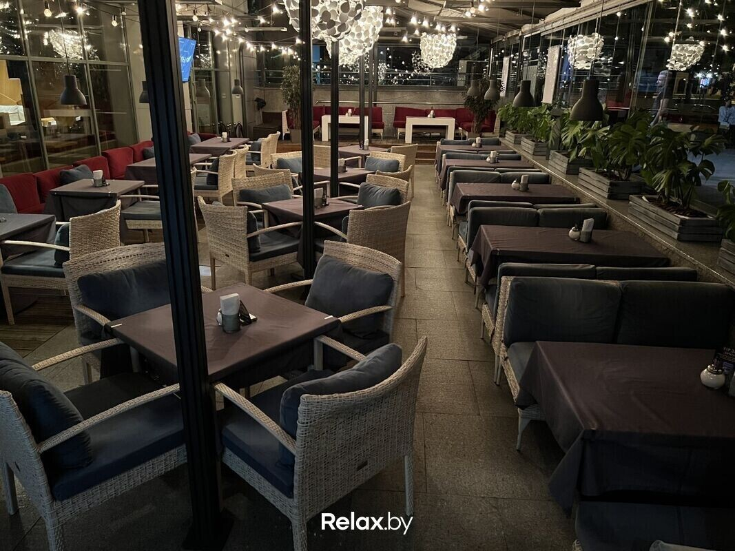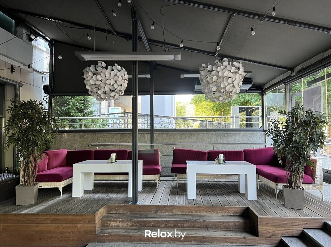 Большая, наполненная солнечным светом и зеленью, эта терраса станет одним из ваших любимых мест в Минске. Уютная атмосфера прекрасно подчеркивается авторскими блюдами шеф-повара Степана. Здесь приятно проводить деловые встречи или наблюдать закат за вкусным ужином в компании друзей. Идеальное место для тех, кто хочет насладиться летом.