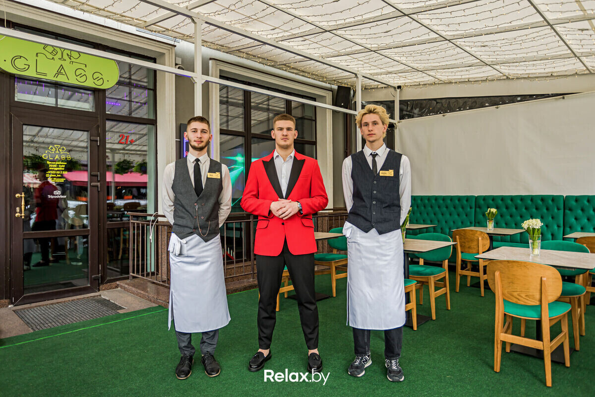 GLASS BAR (Глас бар) — лаунж-бар с летней террасой для ценителей яркой ночной жизни. Расположилась терраса на главной тусовочной улице города — Зыбицкой. В самом же баре современный интерьер с огромными светодиодными экранами, круглой барной стойкой по центру и подвесной конструкцией для go-go над всем баром.