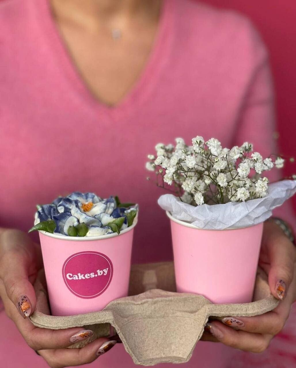 Еще одна кондитерская, которая чутко следит за трендами. Так cake to go здесь можно покупать даже сетами. К Дню матери, например, предлагали 3 разных варианта: сет из 4 тортиков в стакане с начинкой мак-лимон (2 шт.) и черный лес (2 шт) за 40 рублей, а также сет из двух тортиков в стакане с начинкой мак-лимон (1 шт.) и черный лес (1 шт) с росписью из крема за 20 рублей. Украсить такой презент можно букетом гипсофил: выглядит максимально нежно и празднично. Кстати, приобрести десерты можно и в заведении в Новой Боровой.
