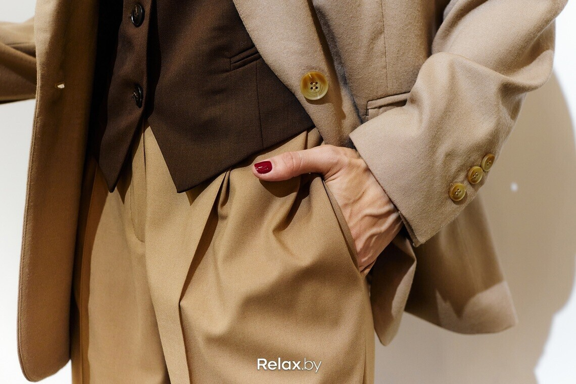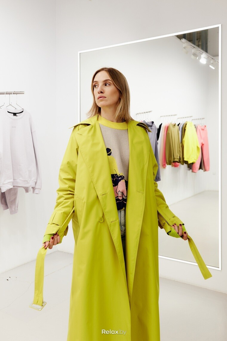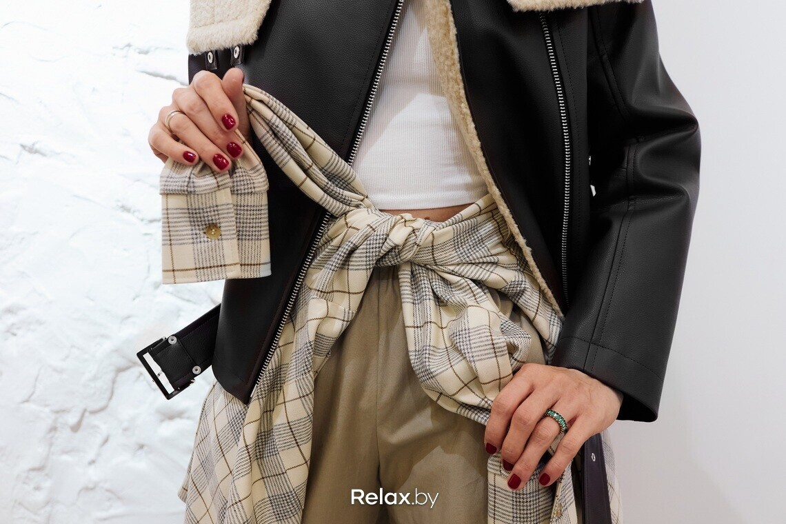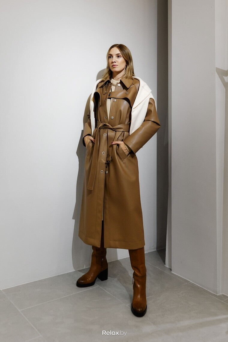 — Брюки, жакеты, юбки… Кожа нас не покидает. Я выбрала тренч из кожи от белорусского бренда LSD clothing. Чем длиннее, тем лучше — длина макси сейчас востребована, как никогда. Опять же, говоря про верхнюю одежду, подчеркиваю, что ее важно выбирать на размер-два больше. Во-первых, это актуальная посадка. Во-вторых, это практично в холодное время года — вы сможете надеть под тренч или пальто жакет, свитшот, свитер либо создать многослойность.