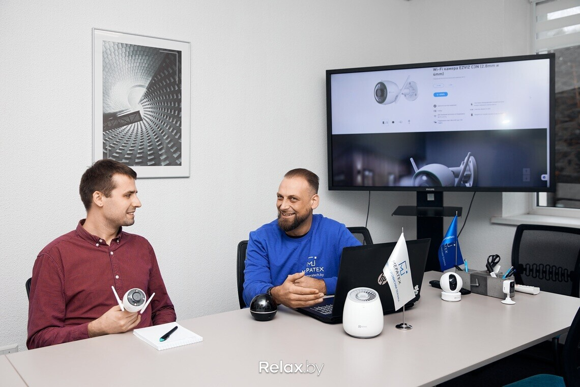 Наши собеседники — Антон Назарович (ведущий специалист по продажам) и Максим Железкин (инженер по техническому сопровождению систем видеонаблюдения). Ребята рассказывают, что компания Мератех вошла в эту незнакомую для себя нишу в непростом 2020-м. Но именно тогда доступные технологии видеонаблюдения и стали набирать обороты: