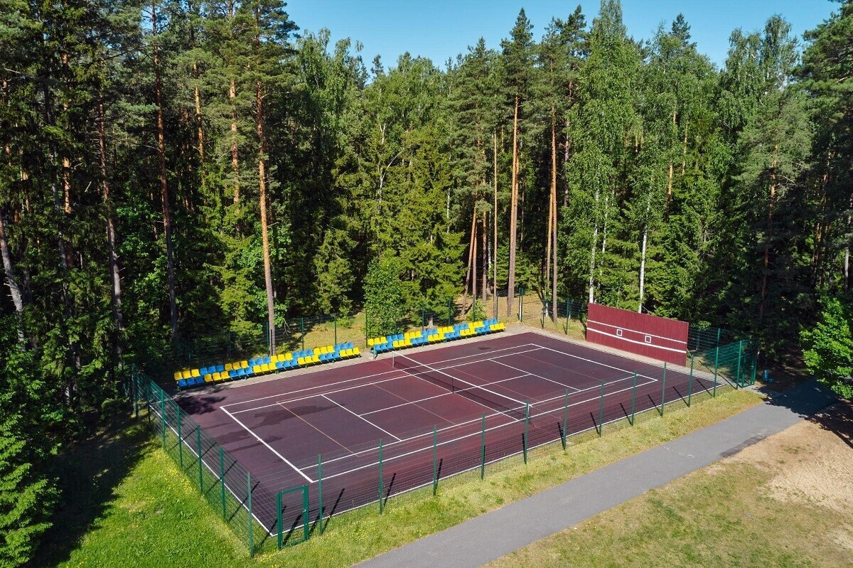 Для активных отдыхающих на территории есть спортивные площадки, кольца для игры в баскетбол, турники, тренажеры, футбольное поле, теннисный корт. Можно и организовать и семейную велопрогулку: в санатории есть услуга проката.