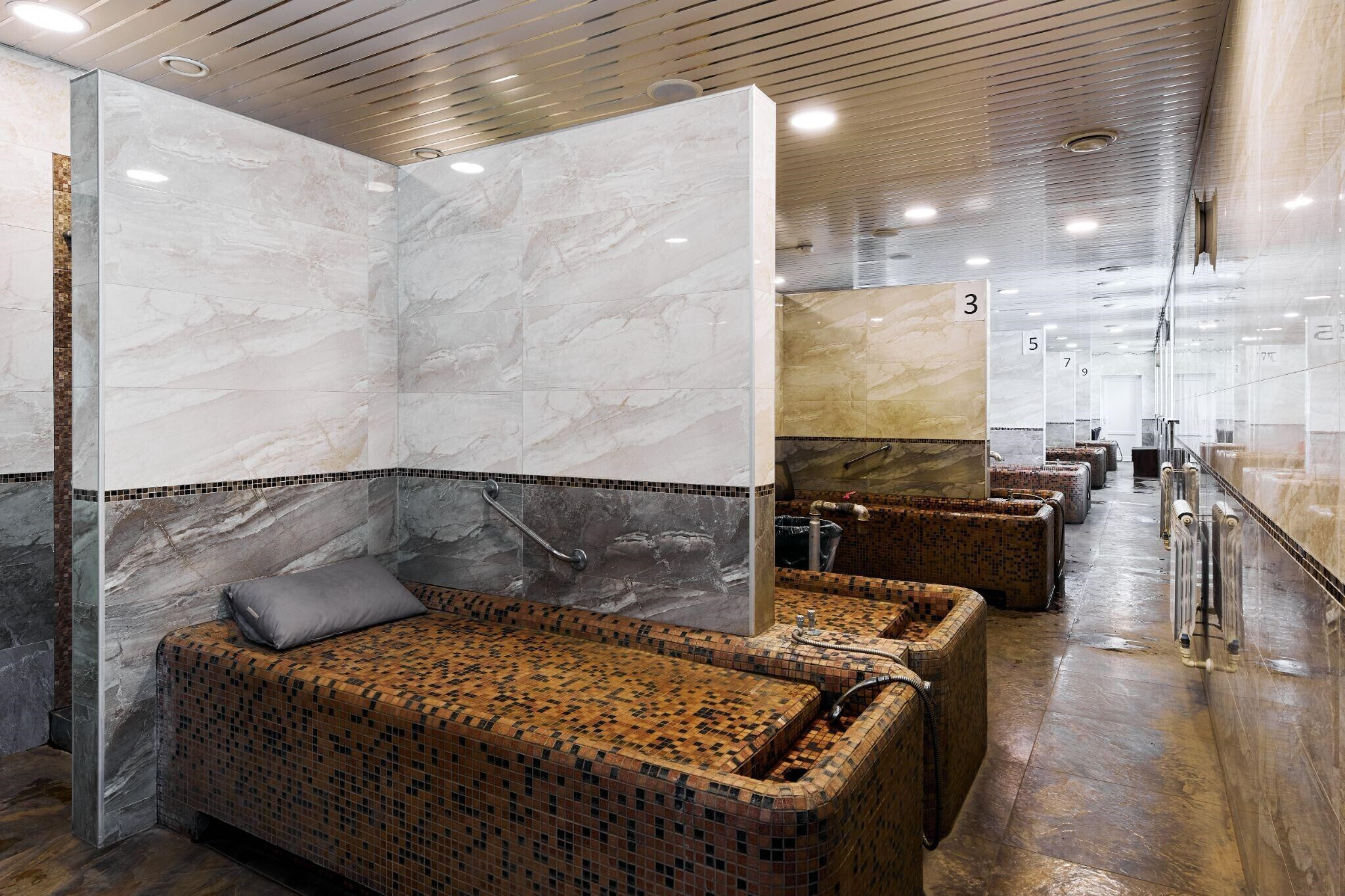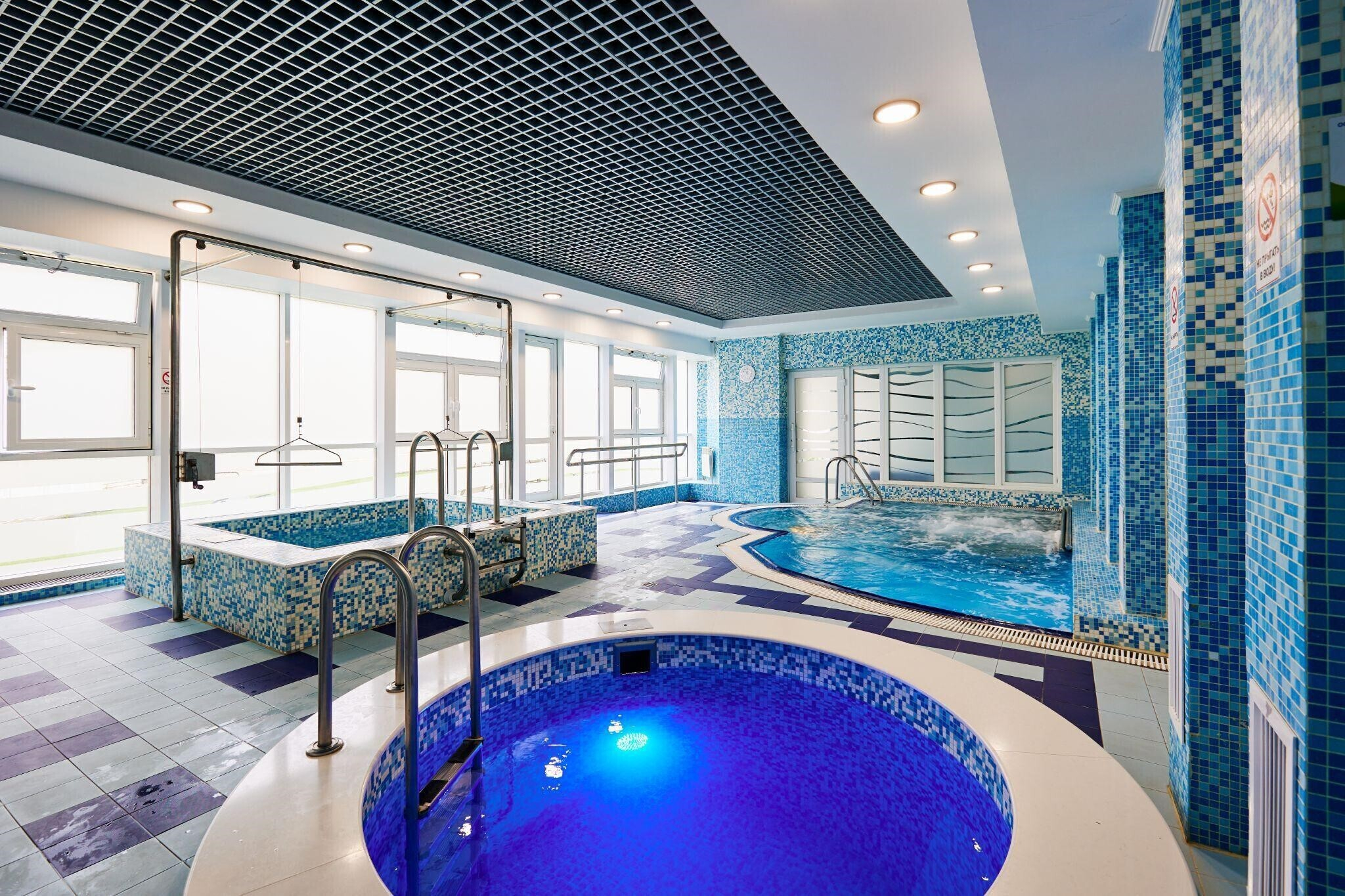 Отдельно хочется рассказать про водно-термальный комплекс. Бассейн оснащен водяными пушками и мини-водопадом. Плавание в совокупности с массажным воздействием струй воды позволят снять напряжение, укрепить мышечный корсет, а также достичь общего эффекта релаксации, что благотворно влияет на нервную систему. А расположенные рядом с бассейном финская сауна и турецкий хаммам тренируют сердечно-сосудистую систему и способствуют выведению из организма токсинов.