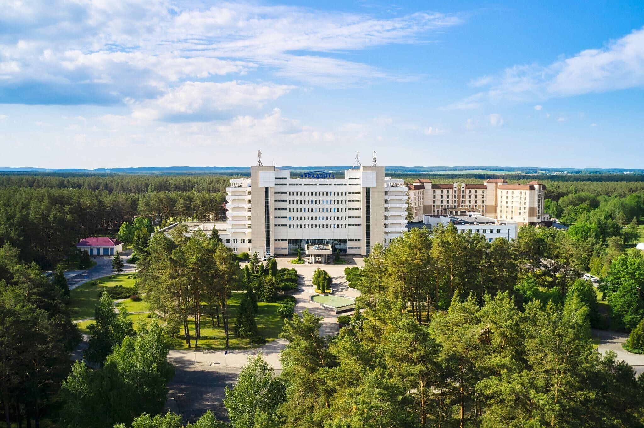 Еще один популярный санаторий Гродненской области, который расположился в 30 км от Гродно в живописном сосновом бору на берегу озера Молочное. Лес, воздух, вода ― здесь легко дышится после шумного города, и все незаметно и эффективно работает на улучшение самочувствия как взрослых, так и маленьких гостей. На просторной территории санатория находятся SPA-комплекс, три спальных корпуса, столовая и вся необходимая инфраструктура.