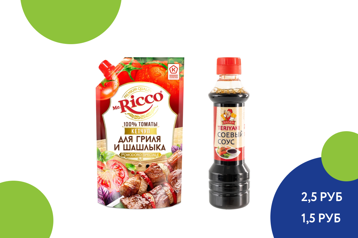 Наверняка у вас есть свой фирменный рецепт маринада для сочного шашлычка, но вдруг наши варианты тоже станут гастрономической традицией! Так универсальная приправа специально для барбекю придаст мясу более яркий аромат и насыщенный вкус, как и соевый соус, изготовленный методом естественного брожения. А вот готовое блюдо дополняйте классикой — томатным кетчупом специально для гриля.