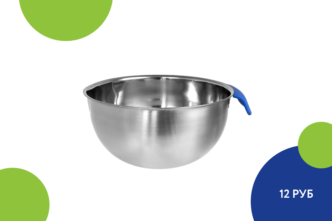 С высокой долей вероятности на пикнике вы будете готовить овощной салат, а значит вам наверняка понадобится удобная миска. Этот вариант от Fix Price из серии O'Kitchen подходит для смешивания ингредиентов для теста, начинок, салатов… В общем, вещь максимально универсальная. Миска выполнена из нержавеющей стали, а цветная ручка из силикона.