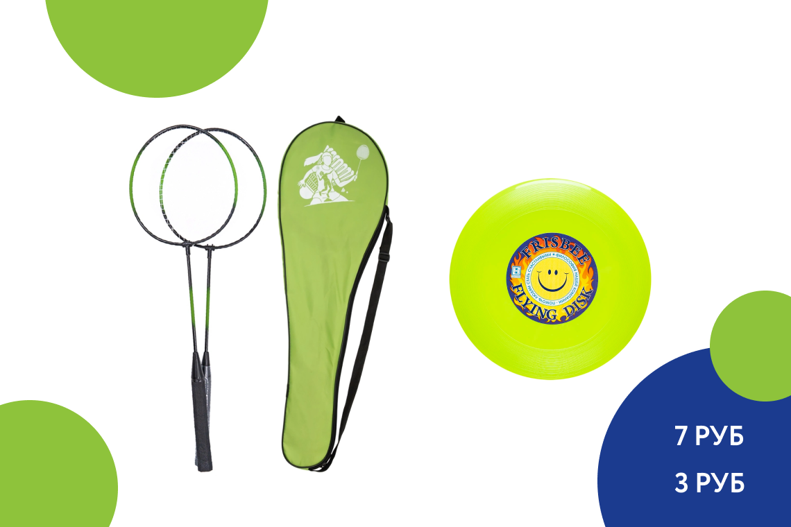 Чем заняться, пока ожидаете шашлык? Конечно, активными играми. Желательно такими, чтобы оценили и взрослые, и дети. Обратите внимание на набор ракеток для бадминтона в удобном чехле на молнии и тарелку фрисби (цена более, чем символическая, а вариантов игр с фрисби десятки!).