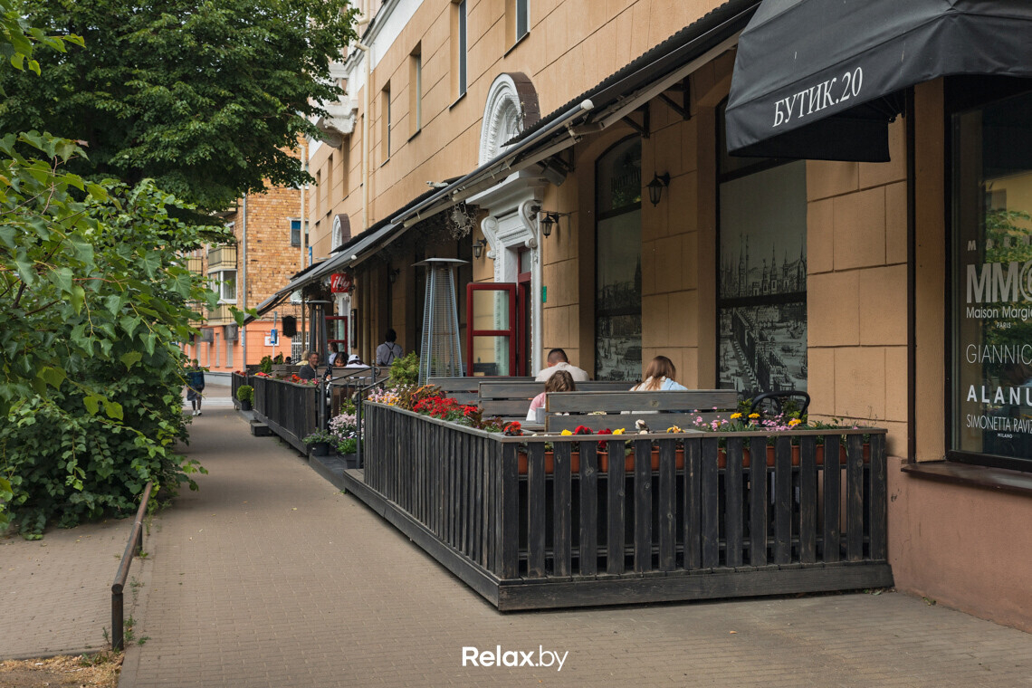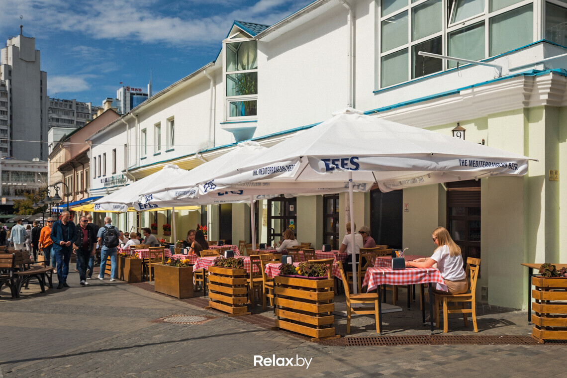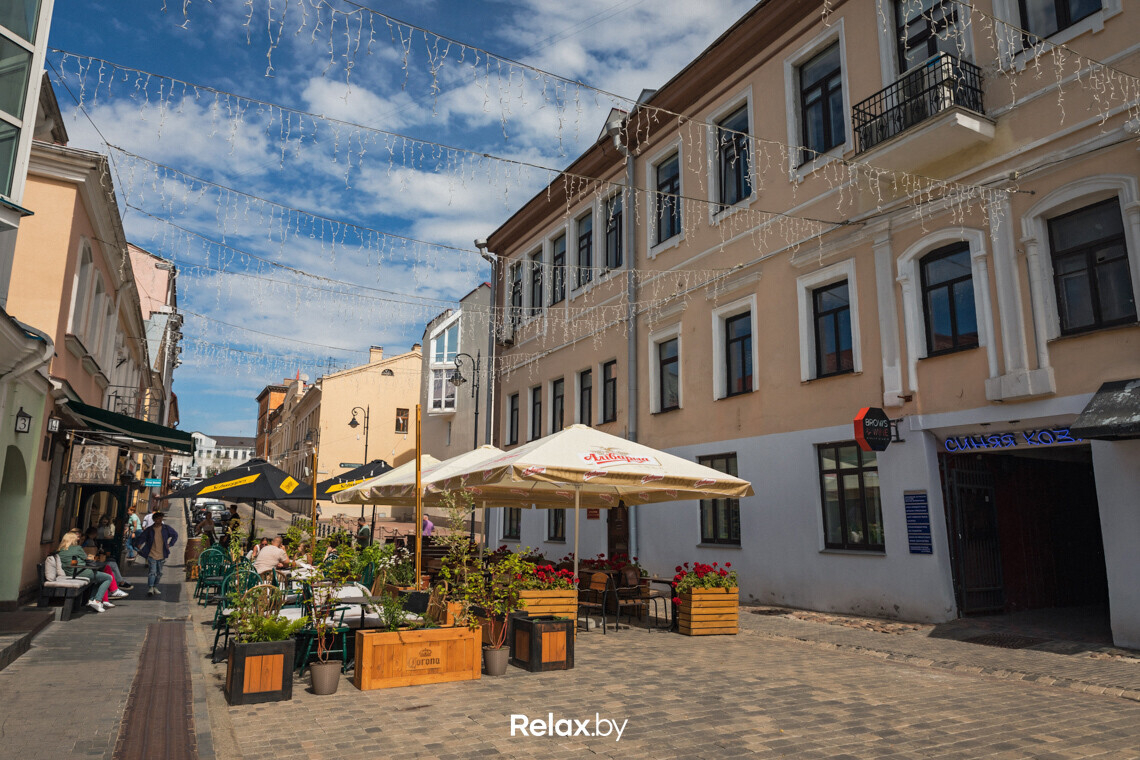 Начнем, конечно же, с главного дворика Минска — Красного. На мгновение вам покажется, что вы где-то в конце 19 века. Но современные стильные террасы кафешек вернут в наше время. Просто пройтись и уйти не получится, здесь слишком красиво! Поэтому замедлитесь, садитесь, заказывайте бокал просекко в «Синей козе» или авторский коктейль в EMBARGO. Имейте в виду, что вечером даже в будние дни со свободными местами здесь проблемно.