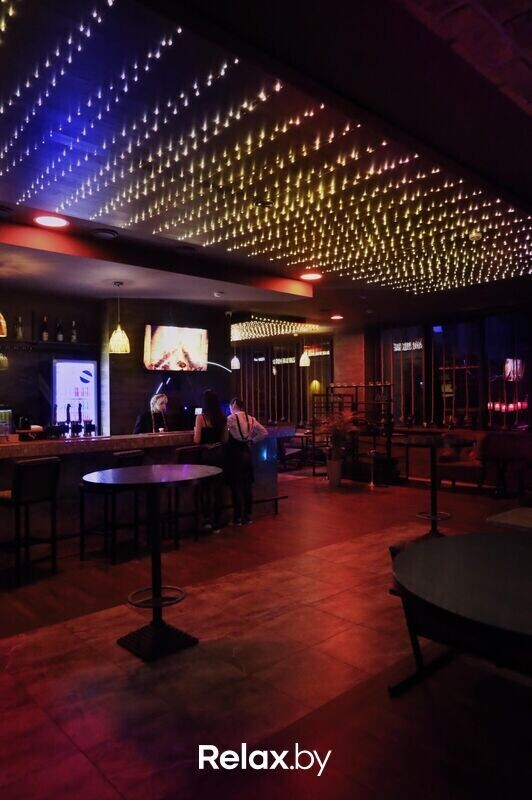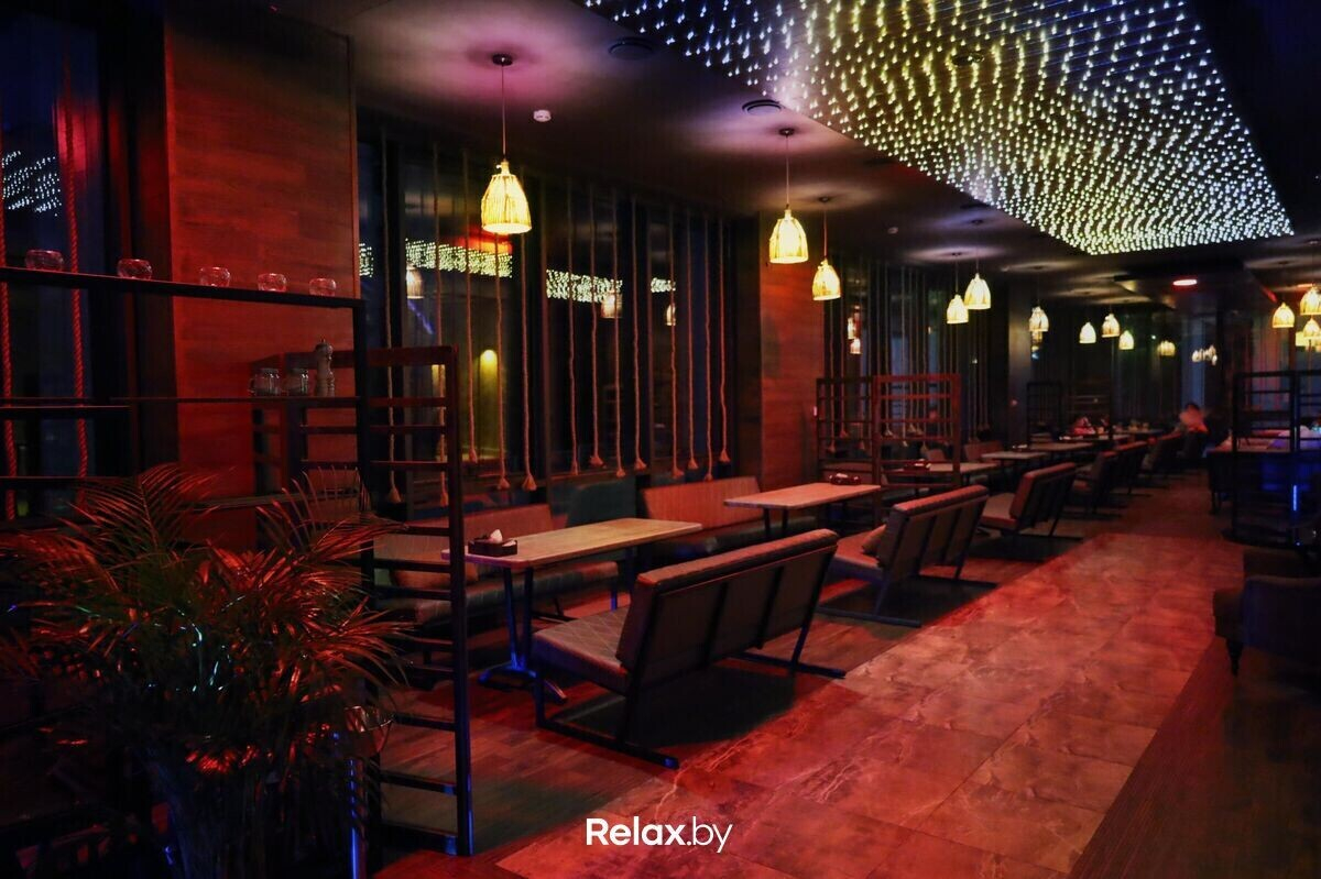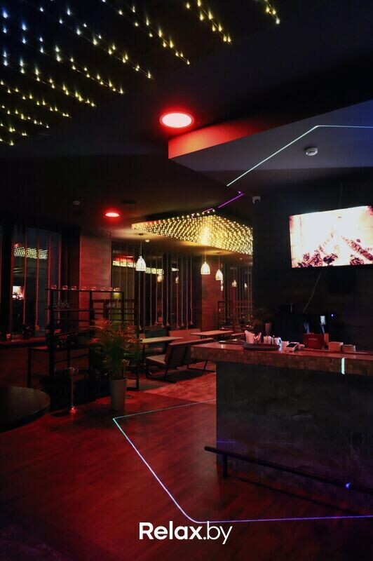 Пространство получилось действительно просторным: общая вместимость — до 150 гостей. В первом зале — большая барная стойка и танцпол, играет ди-джей или поет вокалистка. Второй зал впечатляет панорамными окнами и зонированными столиками: здесь более уединенно и камерно. Если хочется закрыто отдохнуть компанией — бронируйте отдельный VIP-зал.