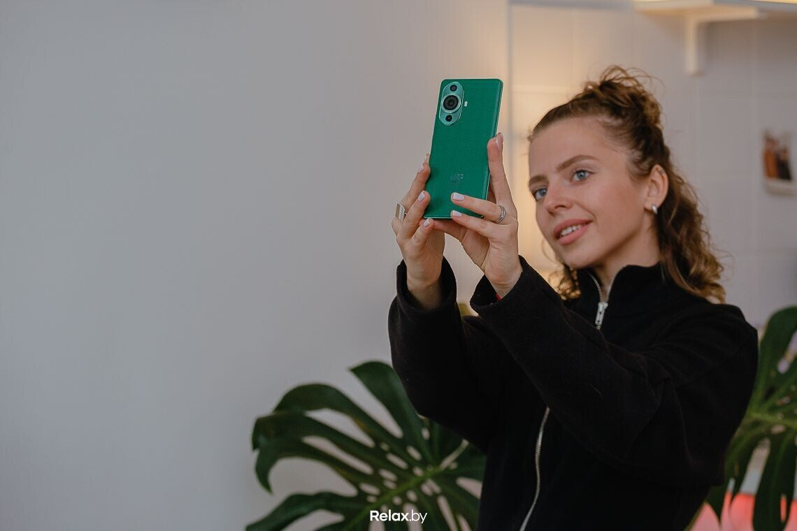 Елене, как фотографу, в первую очередь интересны фотовозможности новинки. На тыльной стороне у смартфона Huawei nova 11 Pro две камеры: основной модуль на 50 Мп с диафрагмой f/1.9 и широкоугольный — на 8 Мп с диафрагмой f/2.2. Девушка отмечает, что это гарантия классного бэкстейджа с любой площадки.