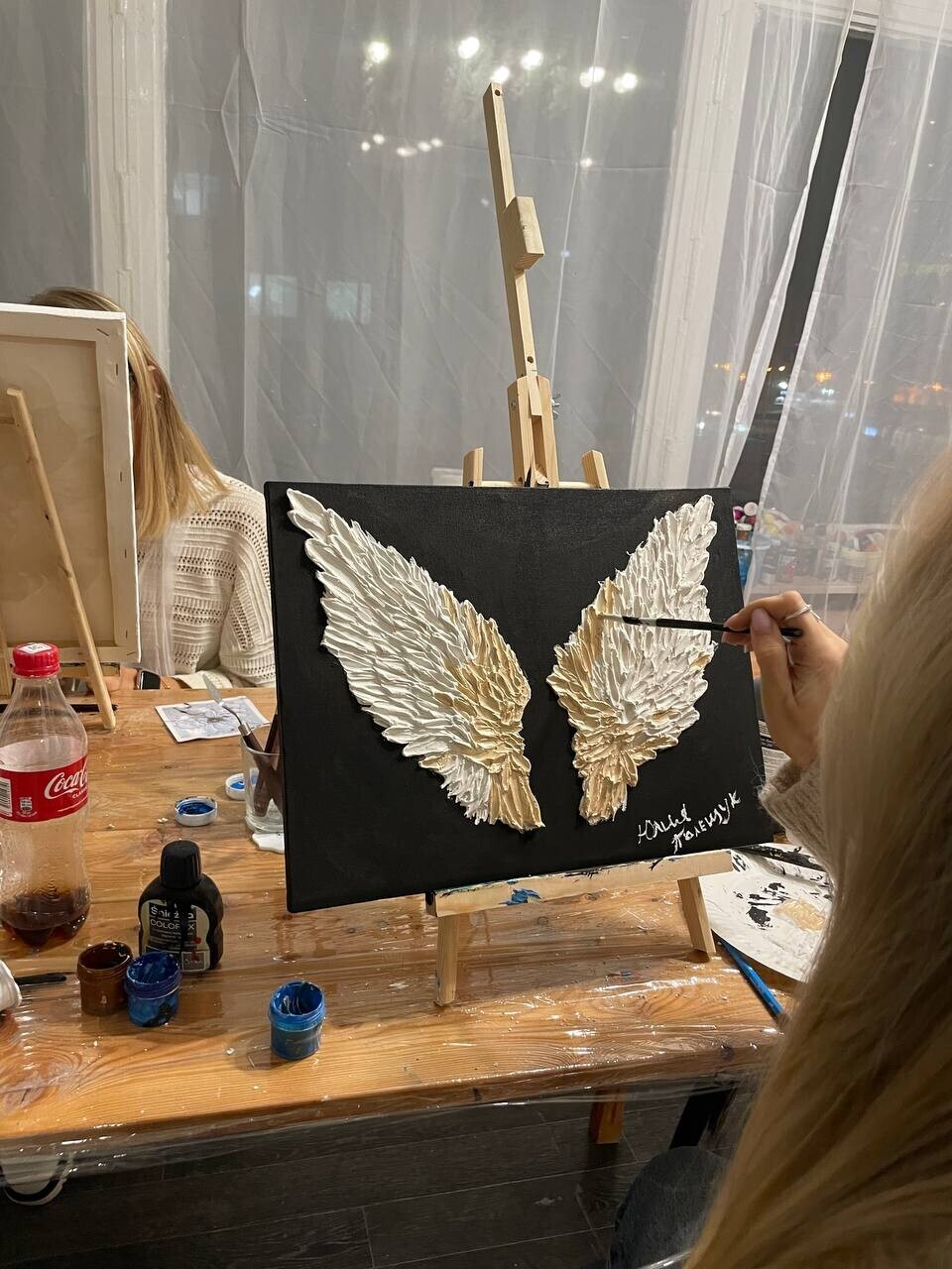 Стоимость: зависит от выбранного тарифа: стандарт —135 руб. (в стоимость включены все материалы для картин), супер тариф — 205 руб. (в стоимость включены все материалы для картин плюс еда, шоколадное фондю, свечи, проектор, создание романтической атмосферы).