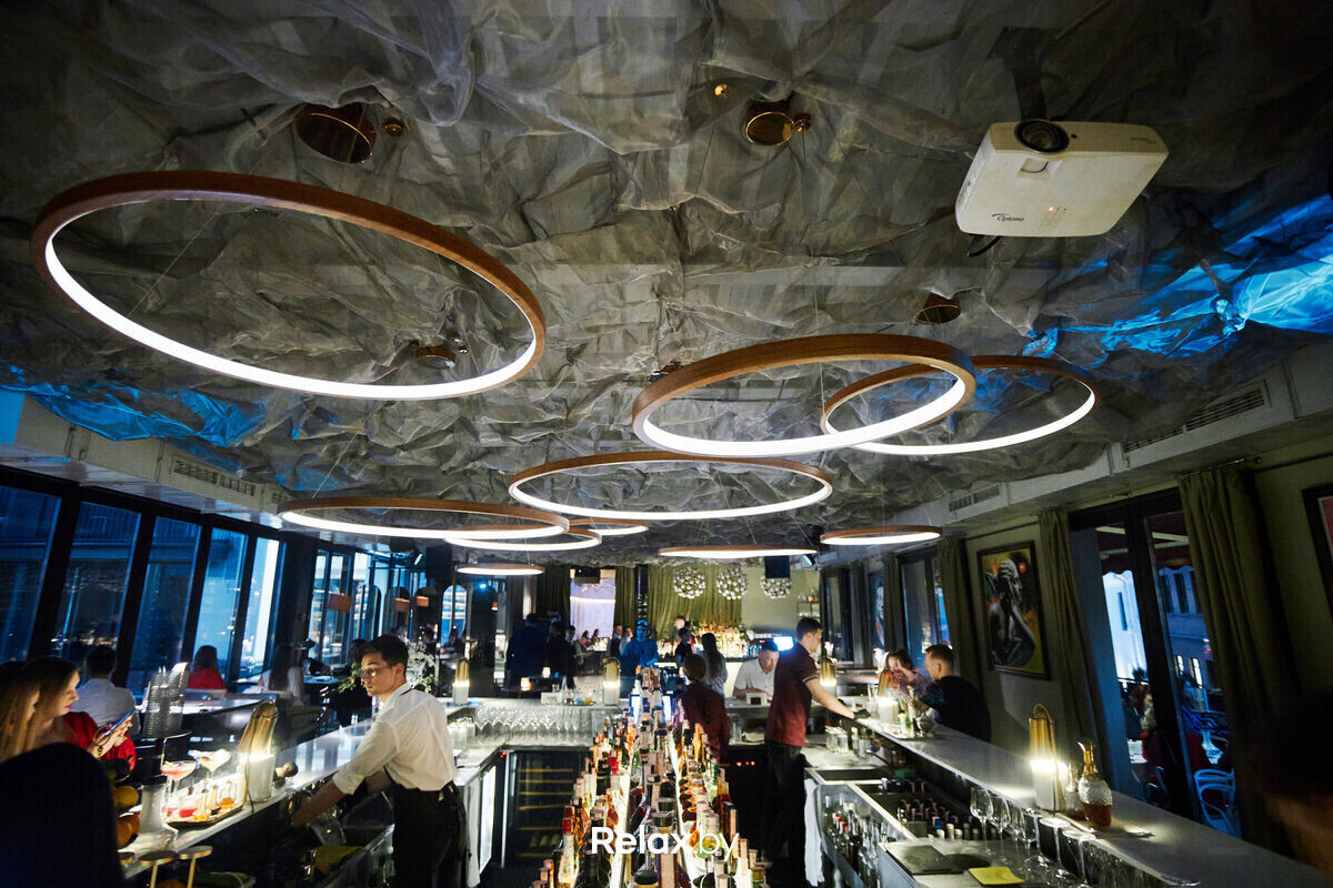 Интерьер в нетипичном стиле фьюжен и отделка из натуральных материалов вписываются в наше понимание изысканности. Также вы наверняка оцените вид из панорамных окон на Национальную библиотеку. А в теплый сезон открываются две просторные террасы, на которых так приятно пить охлажденное игристое.