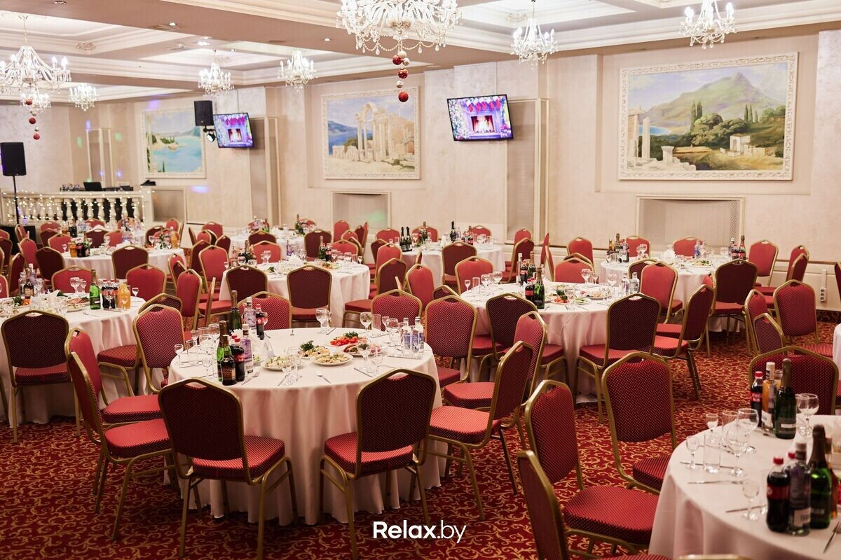 В меню широкий ассортимент блюд европейской и белорусской, русской кухни. Живой вокал, профессиональный и гостеприимный сервис прилагается. Важно, что большой зал вмещает до 350 гостей. Но если ваш выпускной камерный, то обратите внимание на отдельный вип-зал до 20 человек. В ресторане есть караоке-система, а также все необходимое звуковое и световое оборудование.