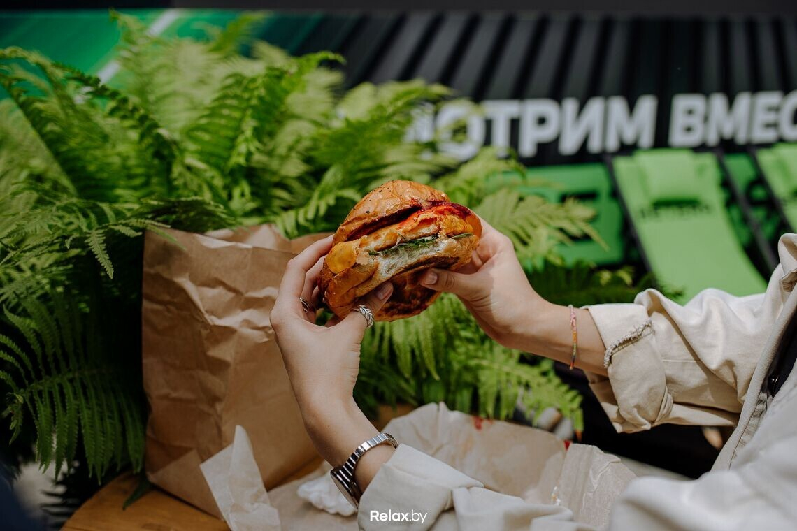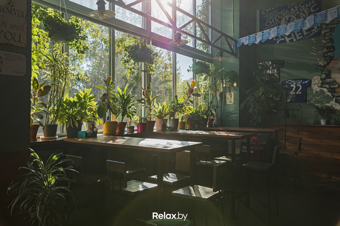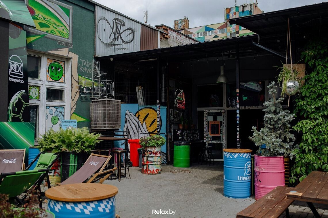 Просторный BackDoor расположился в самой тихой и зеленой части Октябрьской. Вы точно влюбитесь в зеленую террасу с видом на Свислочь. Особенно уютно здесь вечером, когда зажигаются гирлянды с лампочками. Концепт заведения объединил в себе две страсти: крутые бургеры и восторг от просмотра спортивных трансляций на огромных экранах.