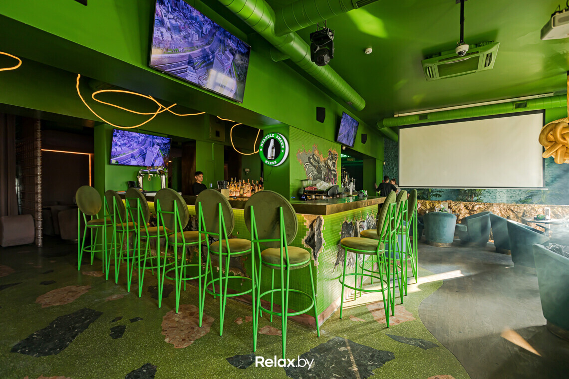 Этот смелый проект воплощает в себе оригинальную идею, в которой гармонично сочетается разнообразная кухня, авторские коктейли и атмосфера, которая уже не первый год притягивает гостей. Здесь яркий, даже провокационный интерьер, а из развлечений — большое количество настольных игр, приставки PlayStation и, конечно, спортивные трансляции на большом экране.