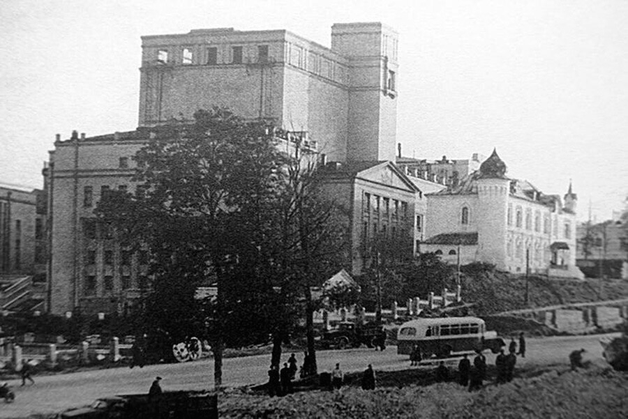Окружной дом Красной Армии, построенный в 1930-х годах по проекту Иосифа Лангбарда. Любопытно, что на его месте с первой половины ХІХ века, находились Покровская (Крестовая) церковь и Архиерейское подворье.