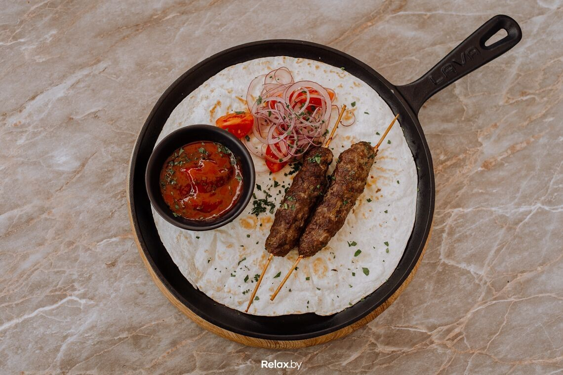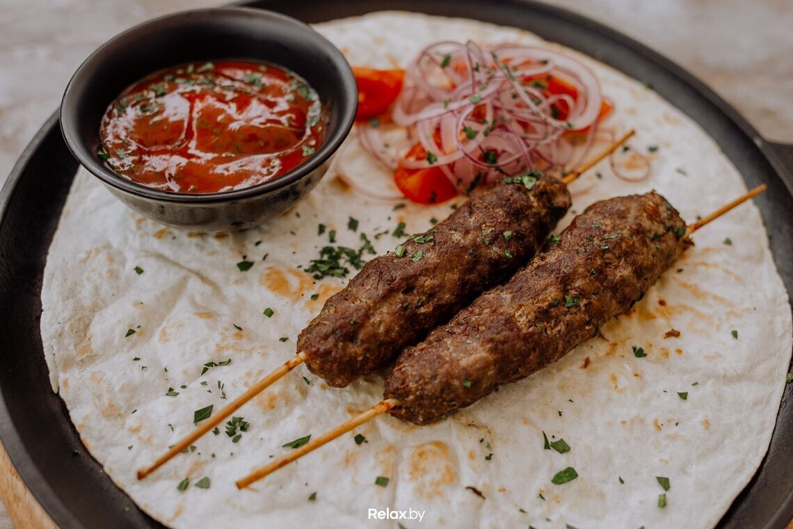 Пробуем сочный люля-кебаб из баранины. Ирина не раскрывает секретов рецептуры, но отмечает, что потратила немало времени, чтобы найти тот самый вкус.