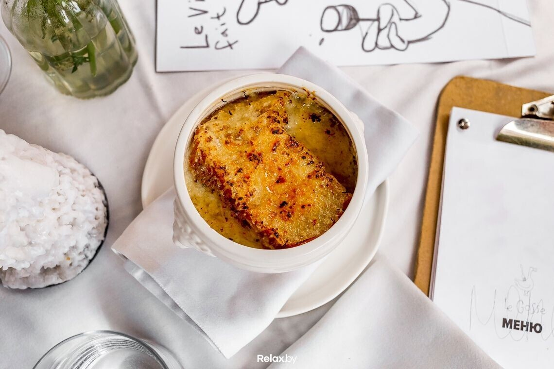 Что любопытно, приготовить суп, не испортив, непросто: нужно соблюсти пропорции с сахаром, правильно карамелизировать лук и сделать так, чтобы все ингредиенты в составе не спорили, а дополняли друг друга. В Le Gosse луковый суп не покидает меню уже пять лет и, думаю, останется у нас надолго.