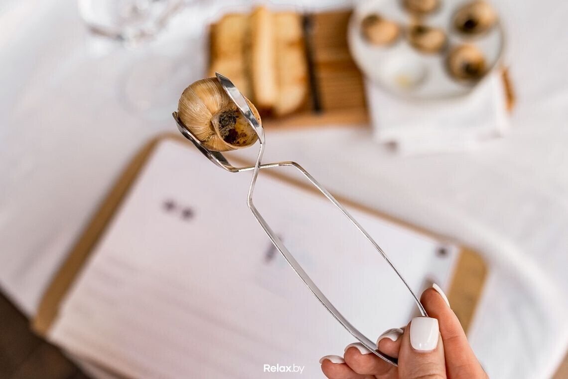 Для подачи эскарго используется специальная посуда. Улиток сервируют ломтиками молочной бриоши.