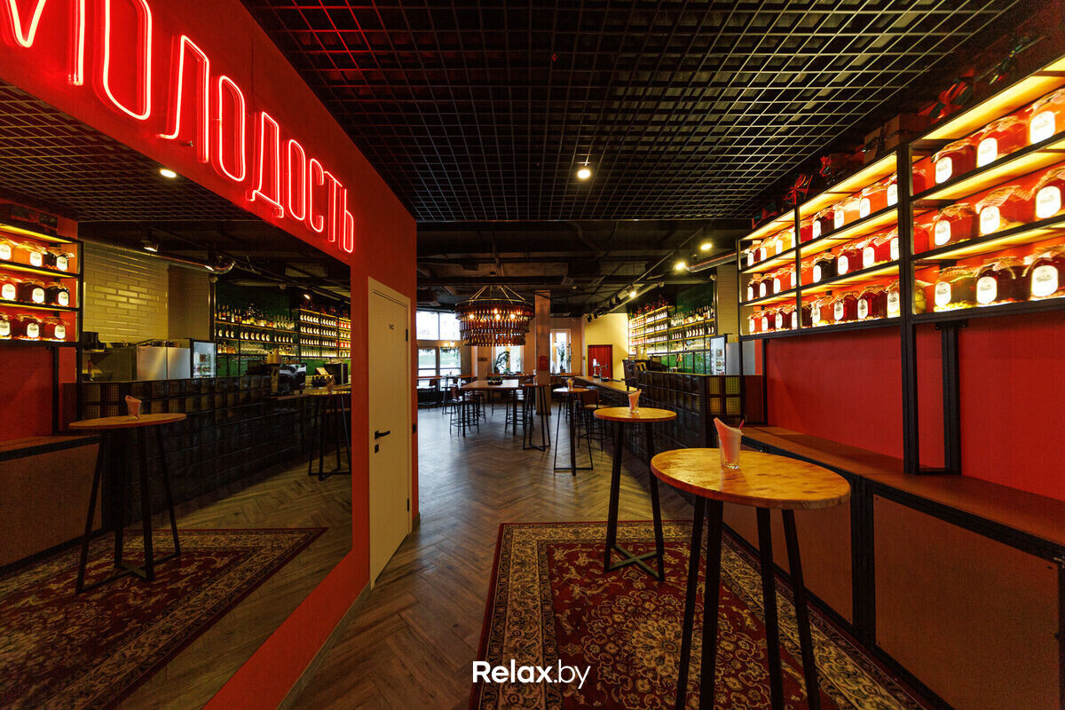 В свежей «Столичной рюмочной» сохраняют традиции славянской культуры, предлагая гостям по-новому взглянуть на знакомые с детства блюда и напитки. Интерьер бара выполнен в ностальгическом стиле, но с современными деталями. Люстра из винных бутылок, графический рисунок с изображением достопримечательностей Минска, а также стеллажи с банками домашних заготовок. Еще одна изюминка — стеклоблоки, когда-то собранные со старого завода в Лиде, что добавляет антуража и создает атмосферу советского дома. В меню — знакомые вкусы: «Оливье», «Селедка под шубой», бутерброды со шпротами и др.