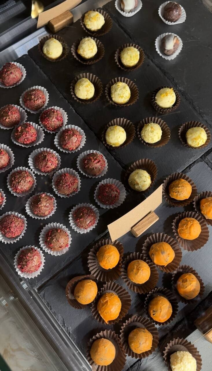 На открытой кухне готовят, в первую очередь, штрудели. Начинки на любой вкус: вишня, яблоко, груша, мак, смородина и яблоко, грибы и курица, овощи и курица, овощи, форель и шпинат, пять сыров. Имейте в виду, что стоимость штруделей указана за 100 г: так что на кассе можно попросить персонал отрезать кусочек побольше или поменьше. Также на вес продают аппетитный львовский сырник (к слову, больше нигде в Минске его не встречали). По ценам: штрудели от 7 руб., львовский сырник от 8 руб., конфеты ручной работы 4 руб. Из последних обязательно попробуйте вкус «Пармезан» и «Лайм-лимон».