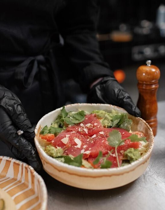 — Мaroon в центре Гродно. Меню идеально для формата тусовочного места: много легких простых закусок (сыры, оливки, мясные деликатесы и др.). При этом здесь можно поесть и полноценно: готовят салаты, поке, роллы.