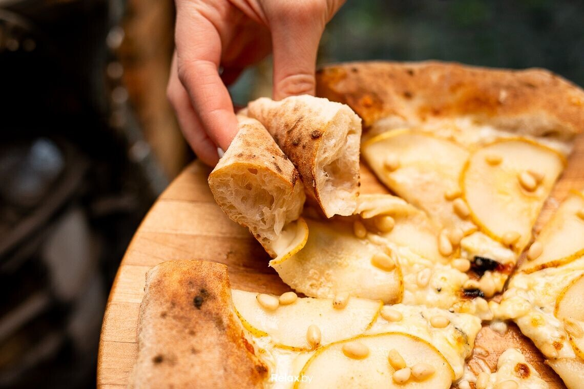 Предлагаем начать с одного из топовых блюд заведения — пиццы на дровах, которую пекут здесь более 3 лет. Процесс приготовления непростой: 24-48 часов готовится только опара.