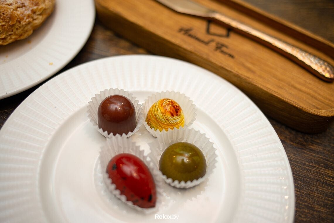 Рекомендуем заглянуть и в карту десертов. Шеф-кондитер работает здесь с открытия ресторана, и за этот период расширила линейку от классических десертов до супер оригинальных предложений. Например, в Animal Farm можно попробовать конфеты ручной работы с копченым виски (!) или базилик-лимон. И на удивление здесь большая линейка веганских десертов. В рецептурах линейки нет молока и яиц.