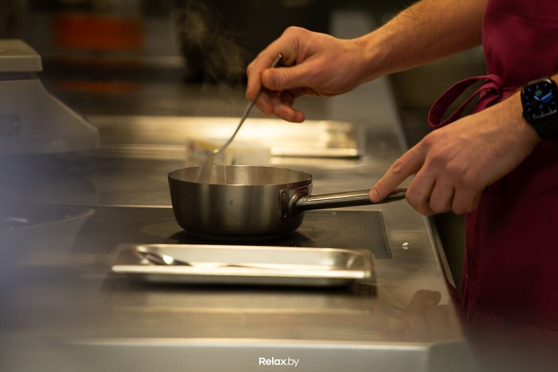 Ланч-меню также выглядит небанально: можно попробовать чебуреки, пельмени или хинкали с олениной (11 руб.). Есть и классика — котлеты или отбивные с пюре. Из белорусской кухни отметим драники с мачанкой (14 руб.). Есть и нотки паназиатской кухни: чука салат с ореховым соусом (9 руб.) или том ям с креветками (25 руб.).