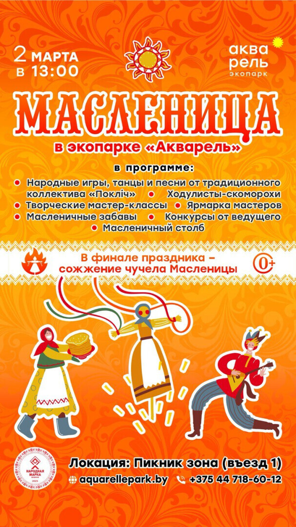 Экопарк «Акварель» — это то самое место, где можно увидеть, например, транспорт будущего, грядки на крышах, экологичные дома, а еще здесь готовят вкусную пиццу из печи. Развлечениями праздника станут мастер-классы по изготовлению традиционных кукол и изделий, забавы от скоморохов, игры, танцы, специальное блинное меню и сжигание чучела.