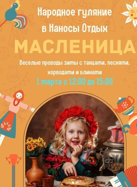 Это одна из наших любимых локаций для загородного комплекса. В Наносах есть все: аутентичные деревенские домики (очень уютные, проверяли!), комфортный пляж, вкусное кафе с домашней кухней, парочка музеев для развлечений и даже возможность покататься на лошадях и посмотреть конное шоу. В программе Масленицы хороводы, конкурсы, музыкальное сопровождение, сжигание чучела, ярмарка (блины, чай, глинтвейн и др.)