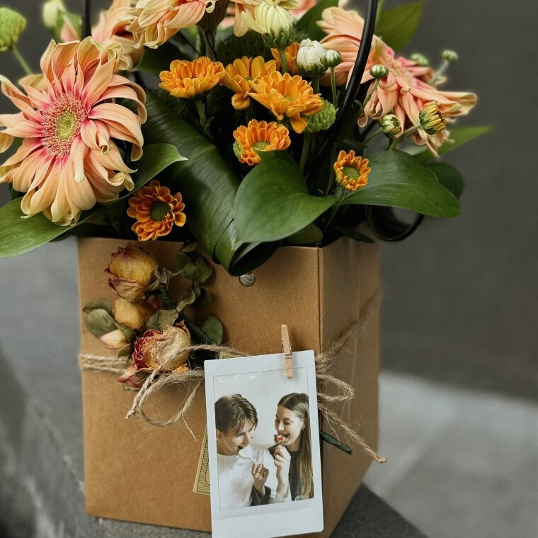 В Рresent Simple с трепетом и любовью подбирают каждую позицию ассортимента, поэтому команде удается создавать очень оригинальные подарочные боксы для женщин и мужчин. Соберут здесь, конечно, и цветочную композицию. На сайте магазина есть специальная вкладка к 8 Марта, где вам предлагают уже готовые цветочные композиции. Стоимость композиций — от 165 руб.