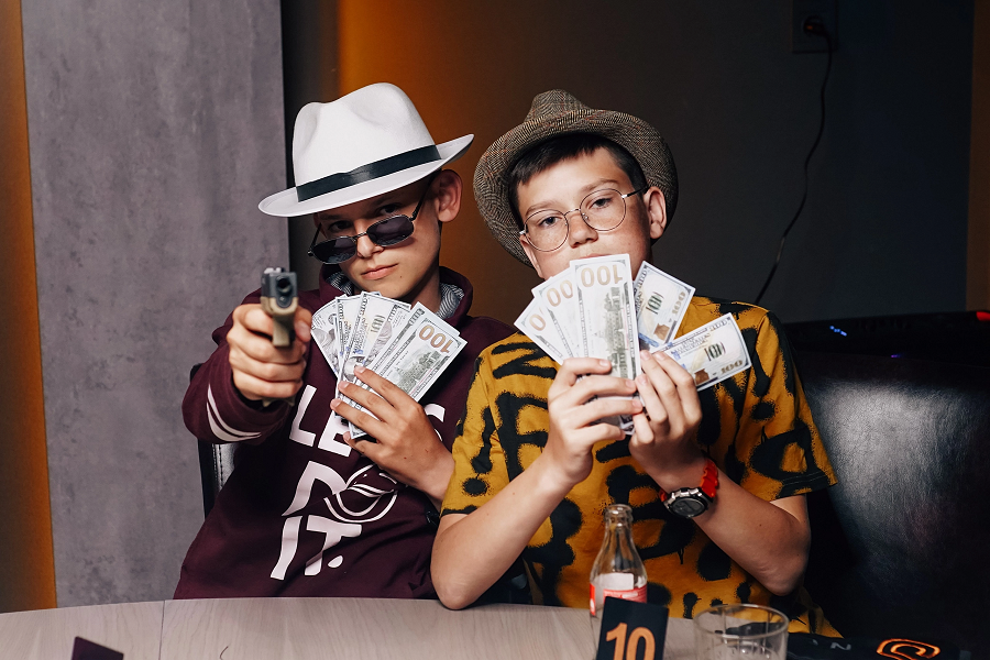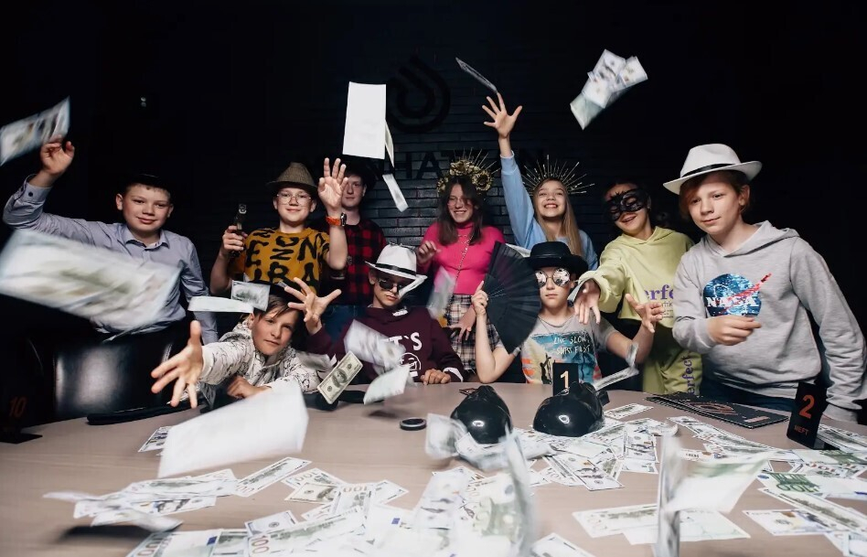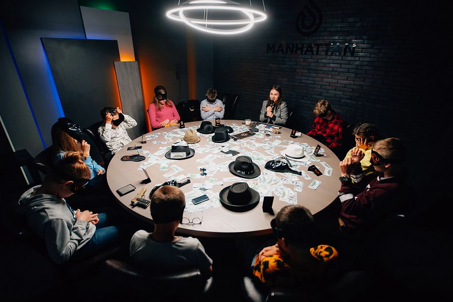 - Полное тематическое погружение: организация выпускного вечера с полным погружением в атмосферу мафии, включая профессиональных ведущих, антуражный реквизит (маски, шляпы, боа, пистолеты, купюры) и музыкальное сопровождение.