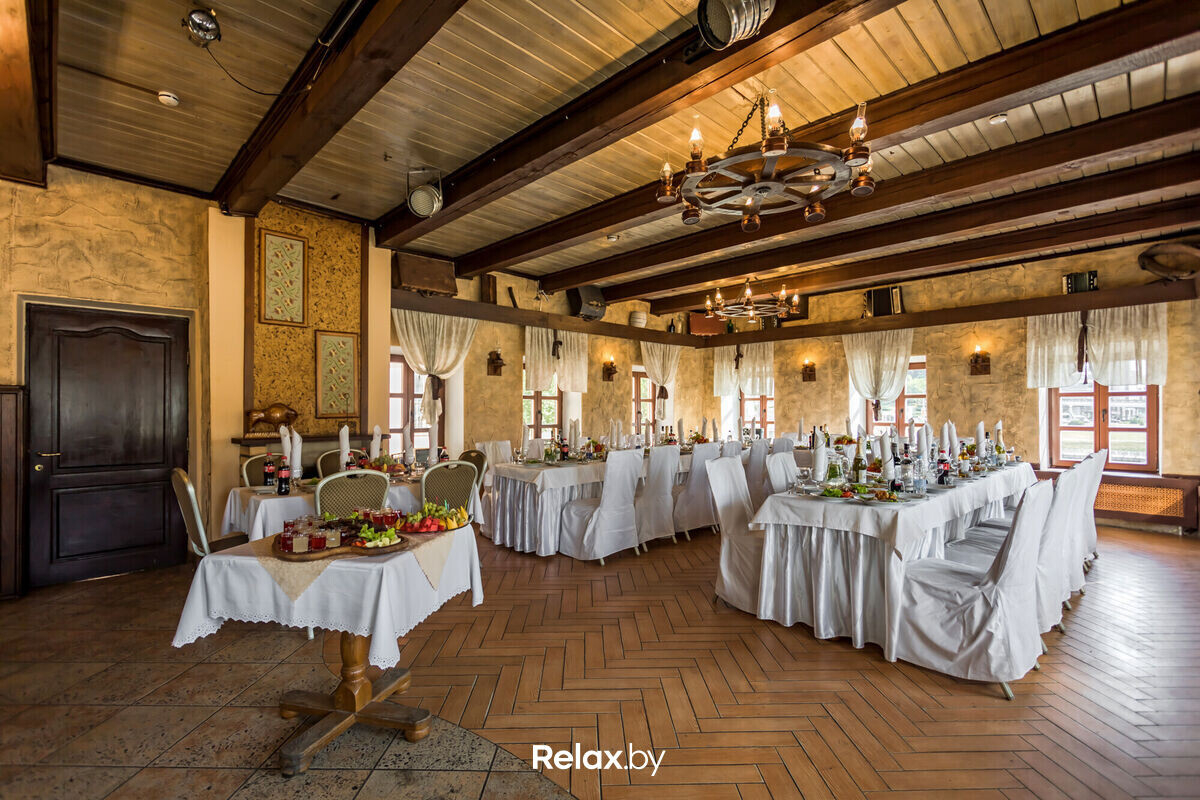 В меню акцент сделан на белорусскую кухню, но есть и отдельное банкетное меню, в котором представлено все разнообразие популярных позиций к праздникам. Также вам помогут в оформлении залов, с музыкальным сопровождением, с выбором ведущих и аниматоров.