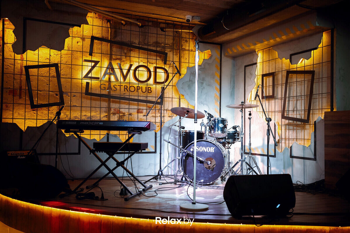 В гастропабе-караоке «ZAVOD» имеется отдельный караоке-зал (до 40 человек), а также две VIP-комнаты, оборудованных отдельными телевизорами вместимостью до 20 гостей. В основном зале гастропаба возможна организация банкета до 70 персон.