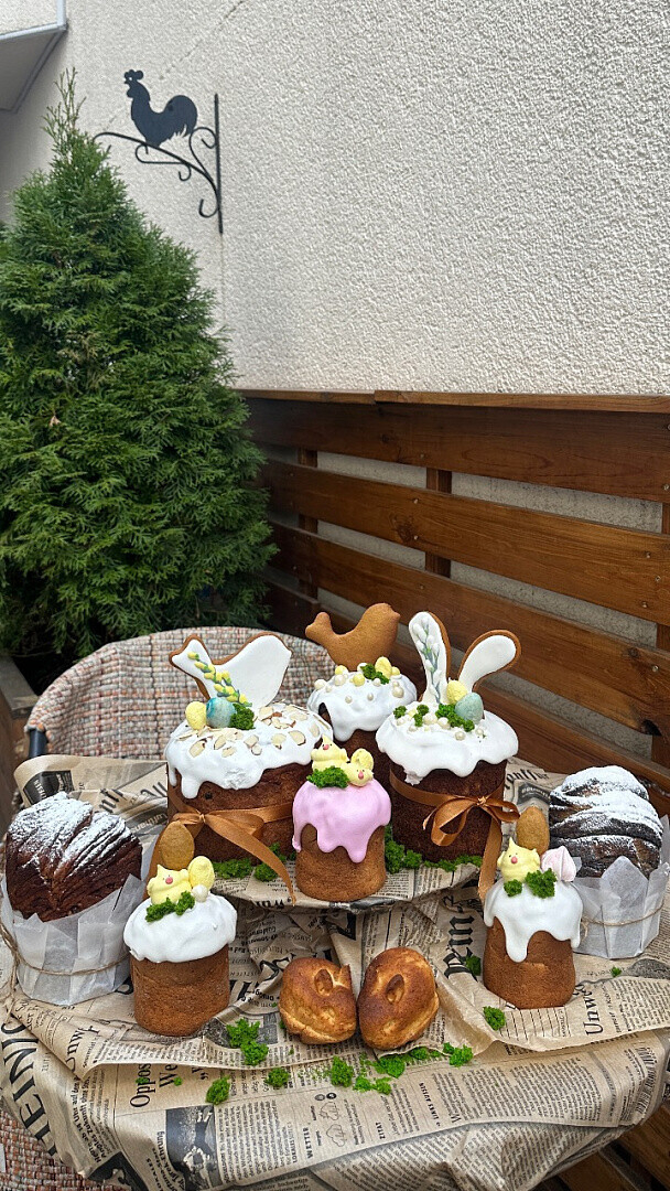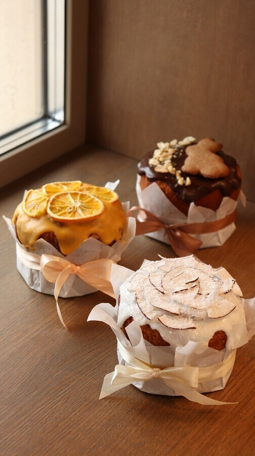 - Кулич с кремом 600 гр (апельсиновый/кокосовый/шоколадный) — утром на праздничный стол;