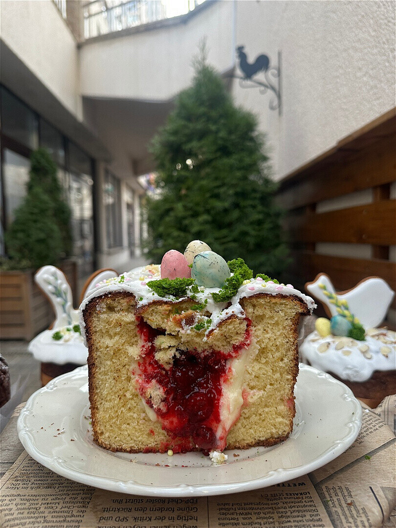 - Кулич 550 г с вишневым кули на закваске (45 руб.);