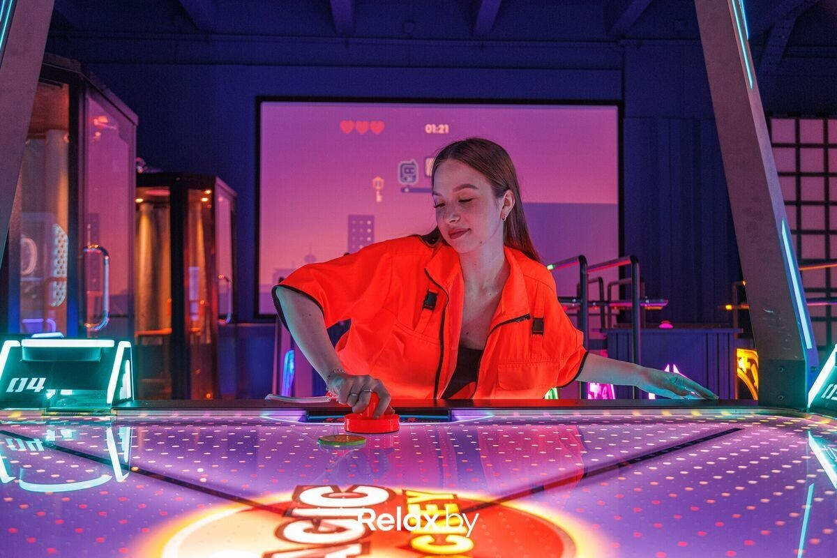 Также из развлечений отметим аэрохоккей, бокс, воркаут-зону, прыжковые активности, караоке. И еще одна фишка центра — лазерный лабиринт. Выглядит очень эффектно, да и уровни сложности разные, что повышает интерес. Признаемся, из трех раз мы не прошли ни разу, что лишь повышает азарт.