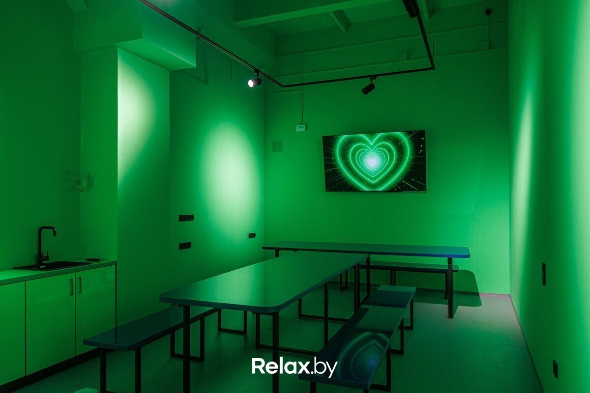 Впечатлили и комнаты, которые можно арендовать для праздников. Во-первых, дизайнеры сделали акцент на моноцвет. Например, вы можете разместиться в салатовой или оранжевой комнате (две комнаты из трех оборудованы небольшой кухней, в каждой есть плазменные экраны, а в одной еще и массажное кресло). Комнаты вмещают до 25 человек.