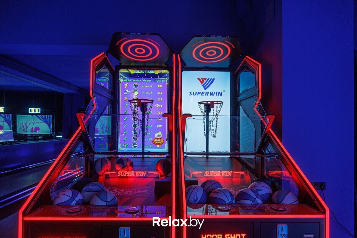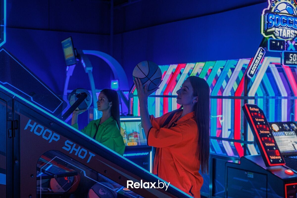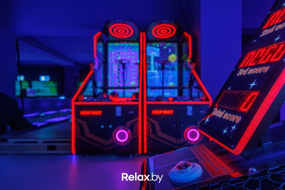 Проходим в основное игровое пространство. В «Спорт Парке» все разделено на тематические игровые зоны, каждая из которых вдохновлена определенными видами спорта. Причем большинство активностей в парке новые и не повторяются в других локациях сети. Из первых активностей, которые нас встречают — футбол, баскетбол, боулинг. Есть даже мини-гольф, но его затестить не успели — повод вернуться.