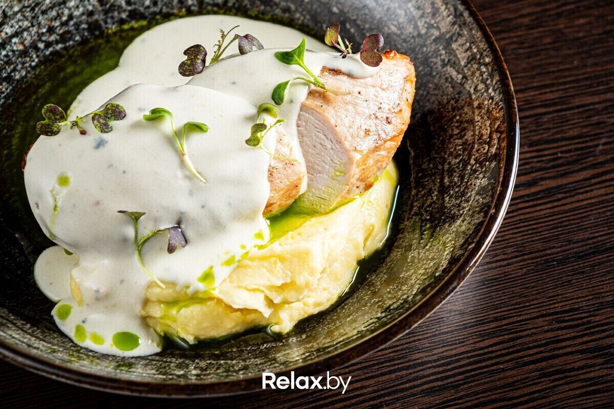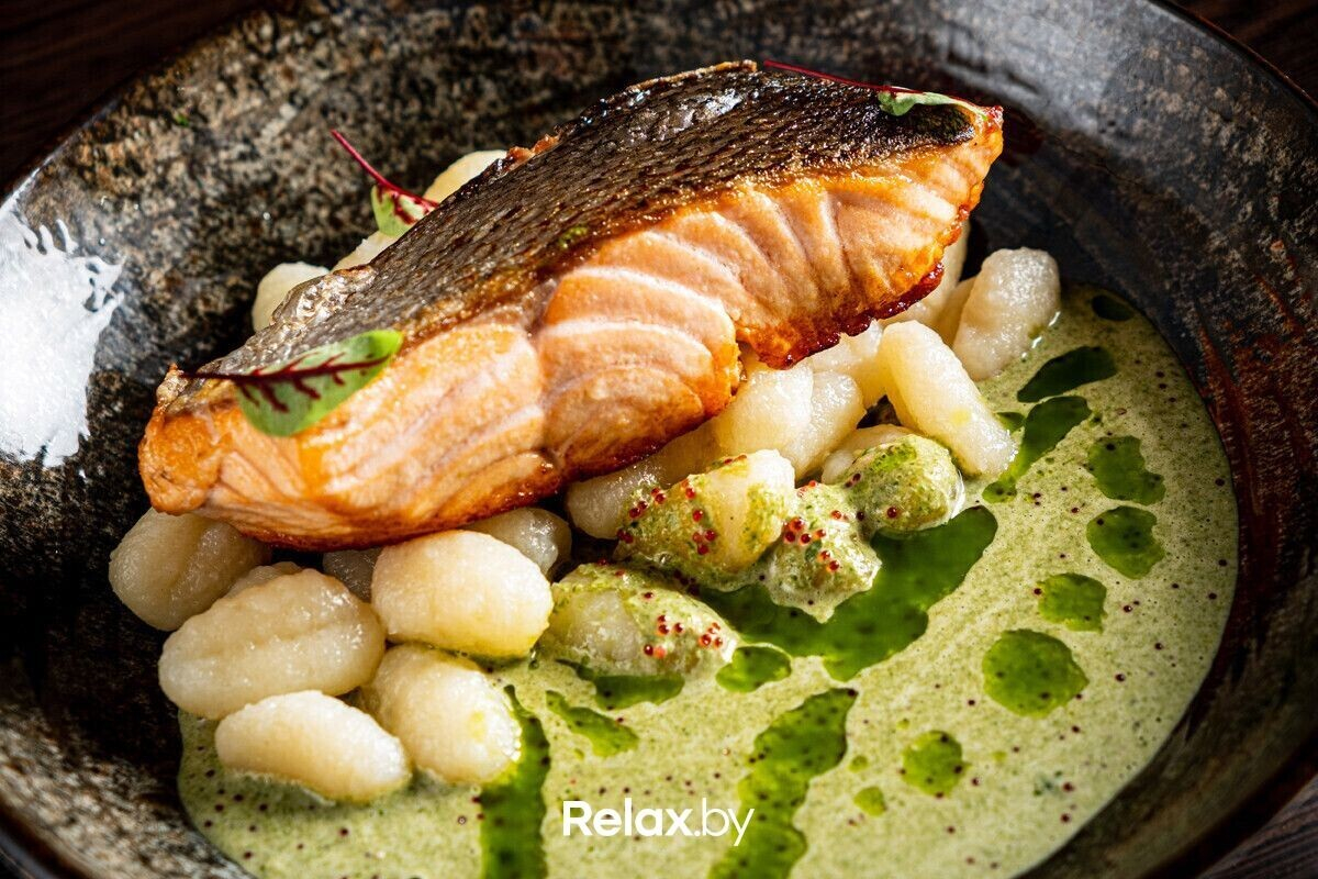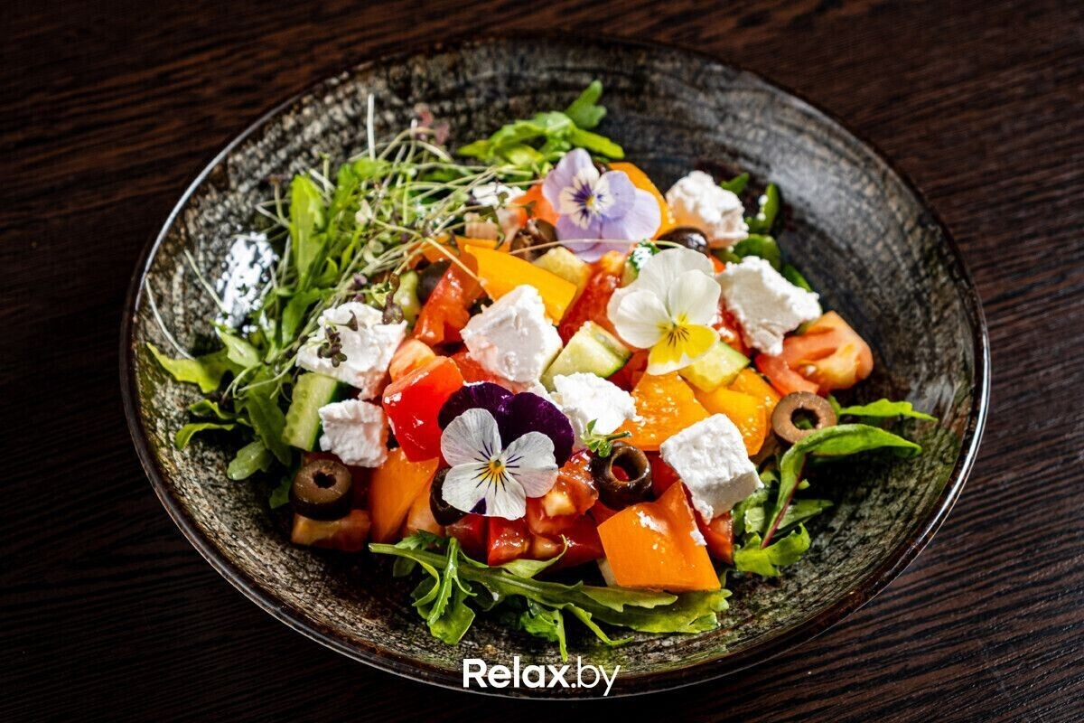 Отдельного внимания заслуживают салаты: попробуйте греческий с красным луком, Цезарь с курицей, салат из рукколы с креветками, теплый салат с говядиной или с куриной печенью. Ну а в категории горячих блюд уж точно найдется позиция на любой вкус: от стейка из лосося или говядины до филе судака, пасты, фрикасе из языка.